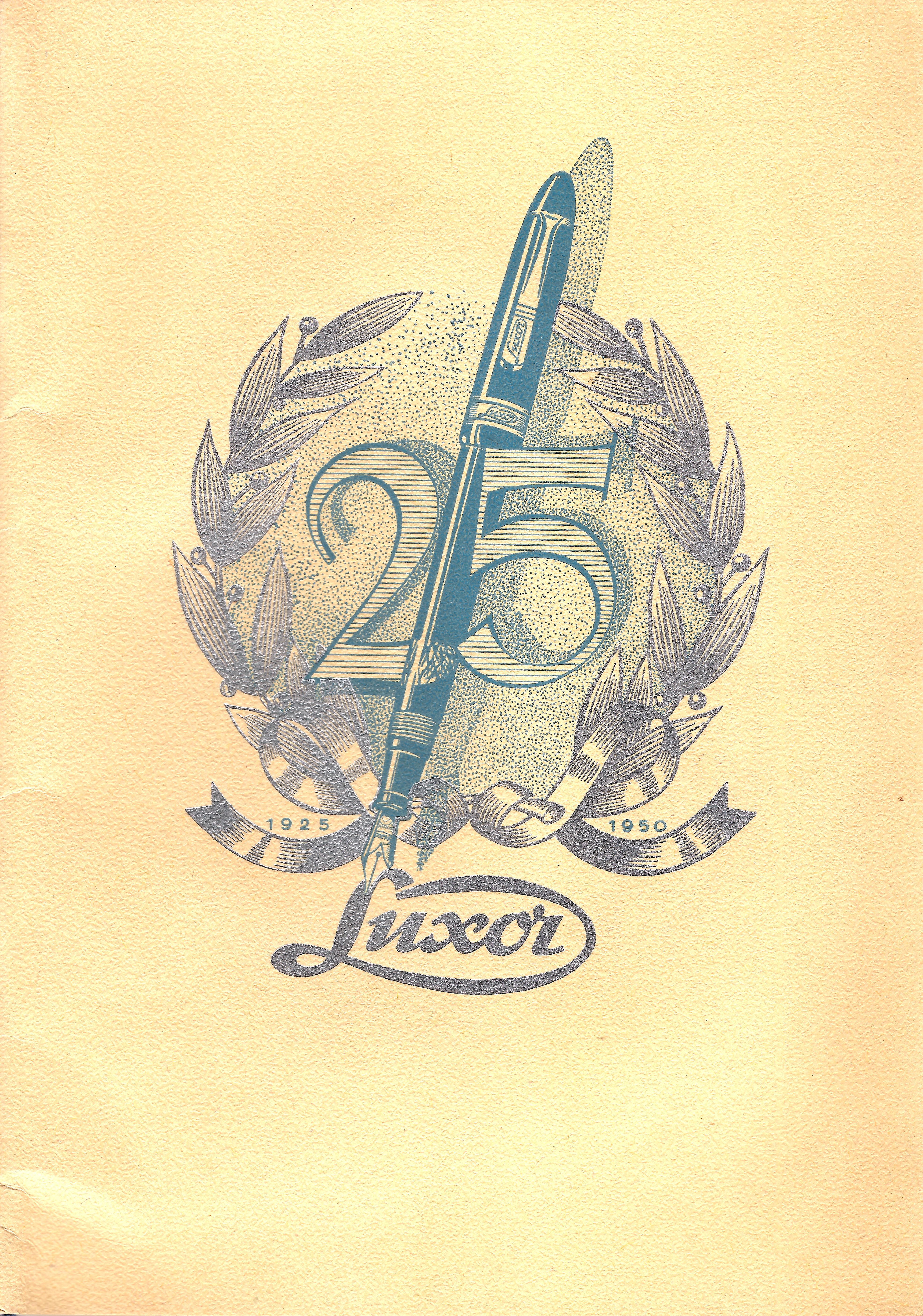 Scansione di un libretto Luxor datata 1950-06-13. Ritoccata dall'autore per una migliore nitidezza. Data visibile direttamente. Libretto celebrativo dei 25 anni della Luxor. Copertina.