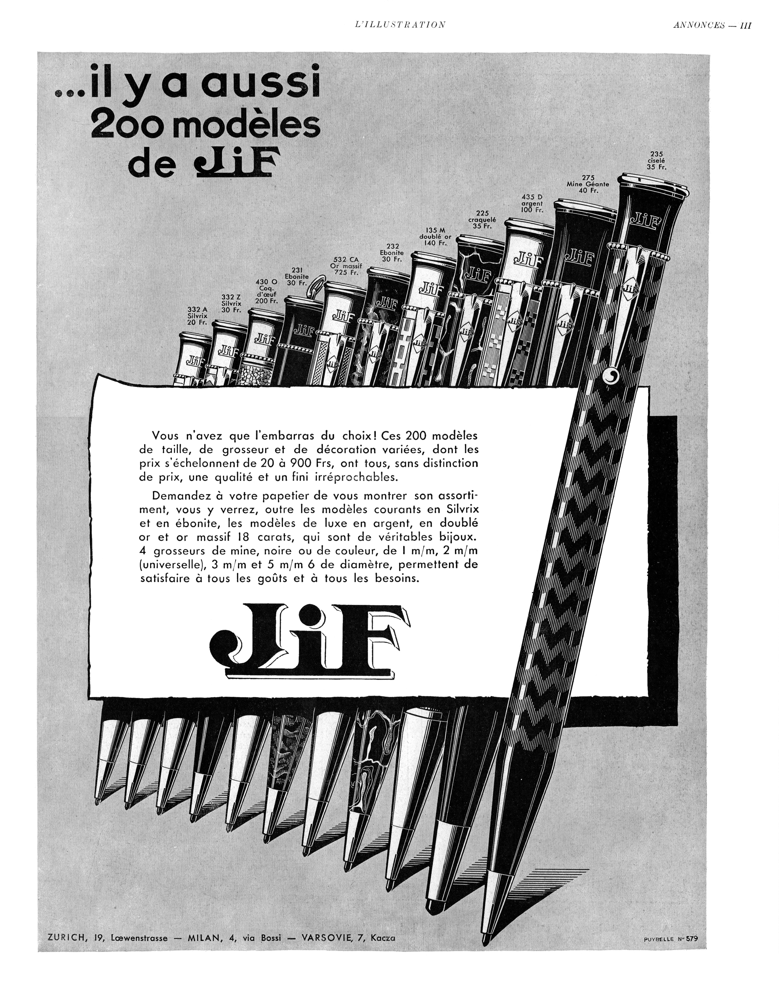 |Note_en=Advertising for different ''[[JiF]]'' pencils some of which bearing the same [[overlay]] used on [[Waterman]] pens: ''"[[Décor O]]"'', ''"[[Décor CA]]"'', ''"[[Décor M]]"'', ''"[[Décor D]]"''.
