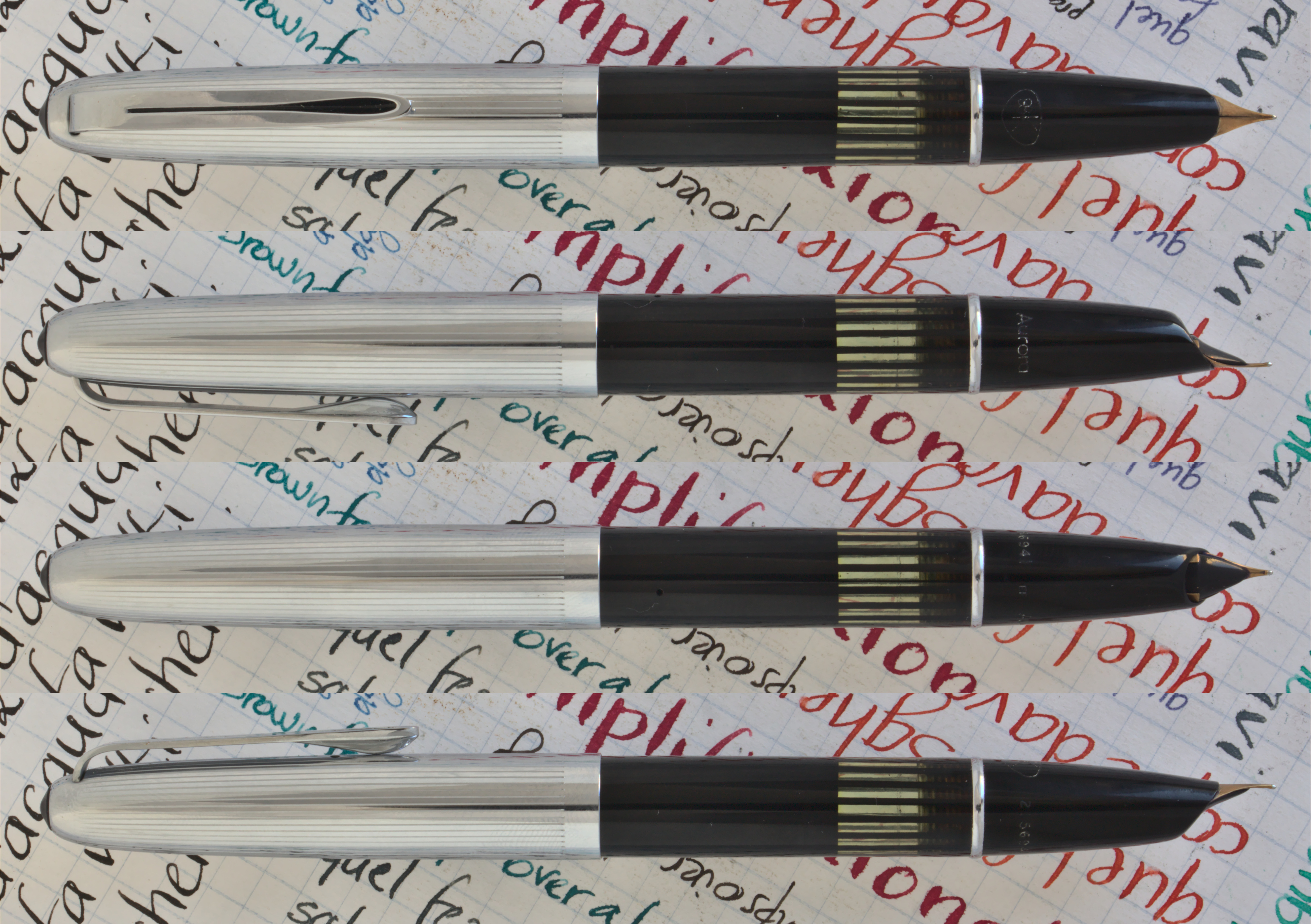 Foto di una penna Aurora. Modello: Aurora 88K. Caricamento a stantuffo. Versione con cappuccio cromato e testina a vite nera. Seriale 2156941.