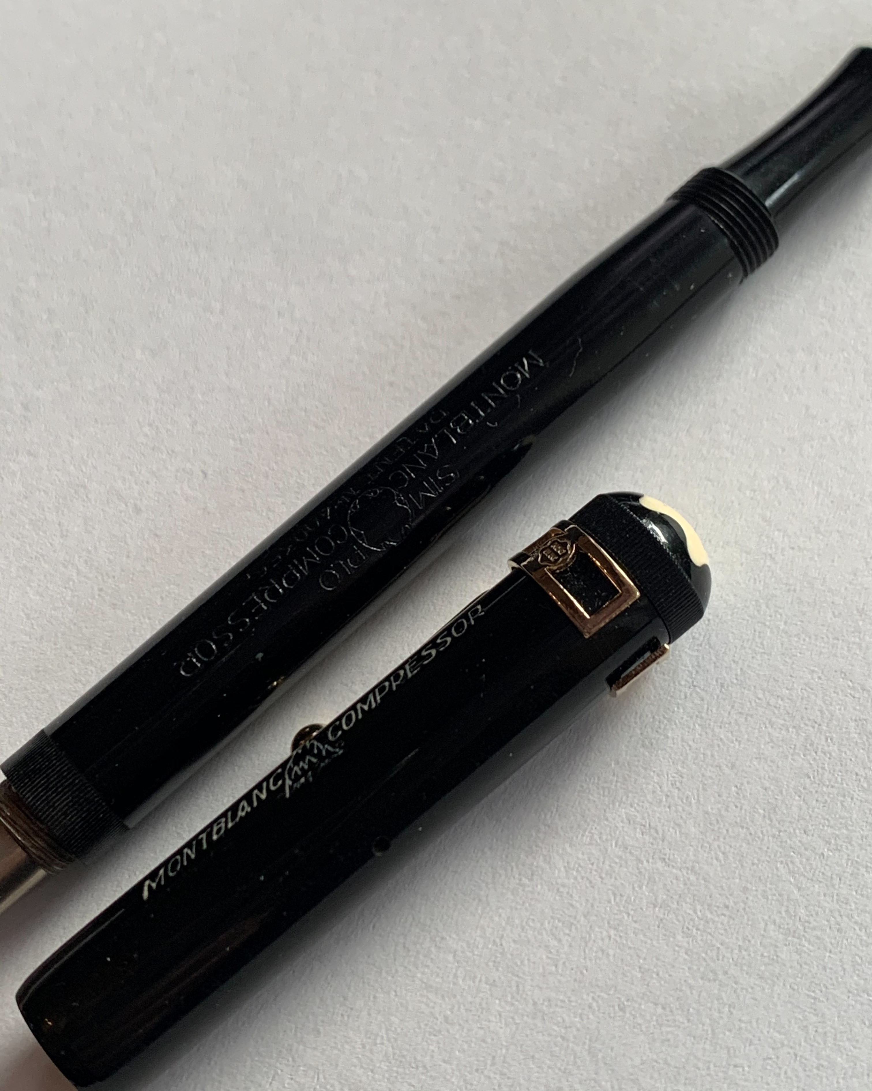 Foto di una penna Montblanc. Modello: Montblanc No. 2. Caricamento pneumatico. Realizzazione in ebanite nera. Versione con caricamento Compressor. Riporta stampigliato il numero del brevetto (nº DE-400356). Contributo di Amedeo (utente forum solido).