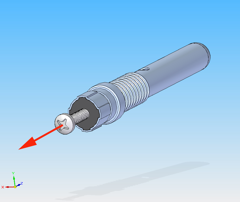 Schema di inserimento della vite nella guarnizione del sistema di alimentazione di una Snorkel Pen.