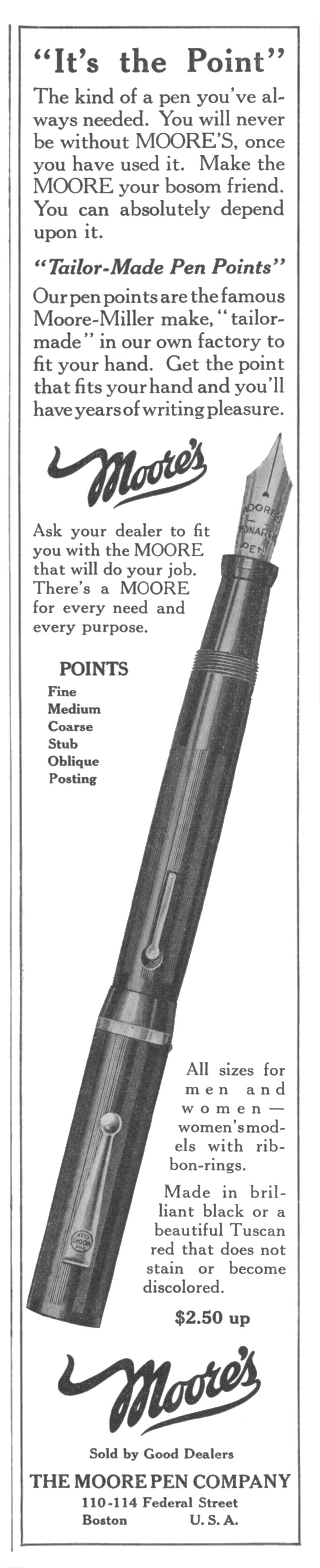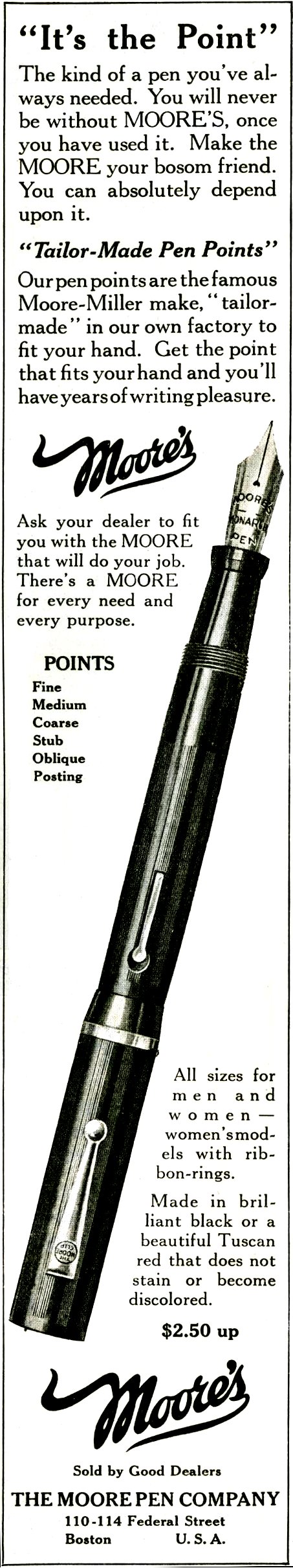 <multilang> @it|Scansione di una pubblicità Moore degli anni '20. Ritoccata dall'autore per una maggiore nitidezza. @en|Scanning of a '20s Moore advertising. Retouched by the author for a better sharpness. </multilang>
