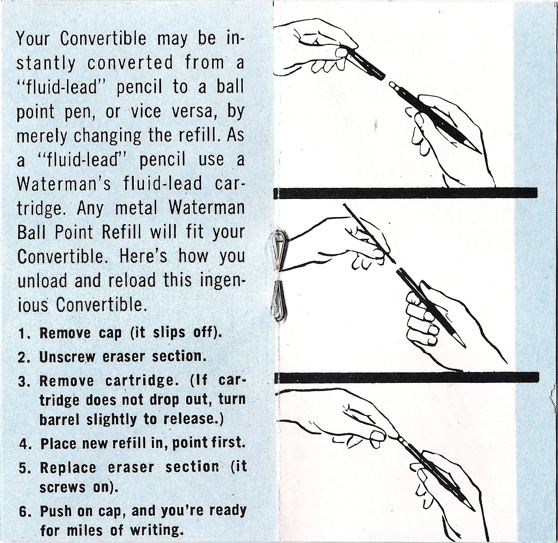 <multilang> @it|Scansione di un libretto di istruzioni della Waterman degli anni '50 per il modello CF. Tratto da una confezione originale. Pagg. 07-08. @en|Scanning of a '50s Waterman instruction booklet for the CF model. From the original package. Pag. 07-08. </multilang>