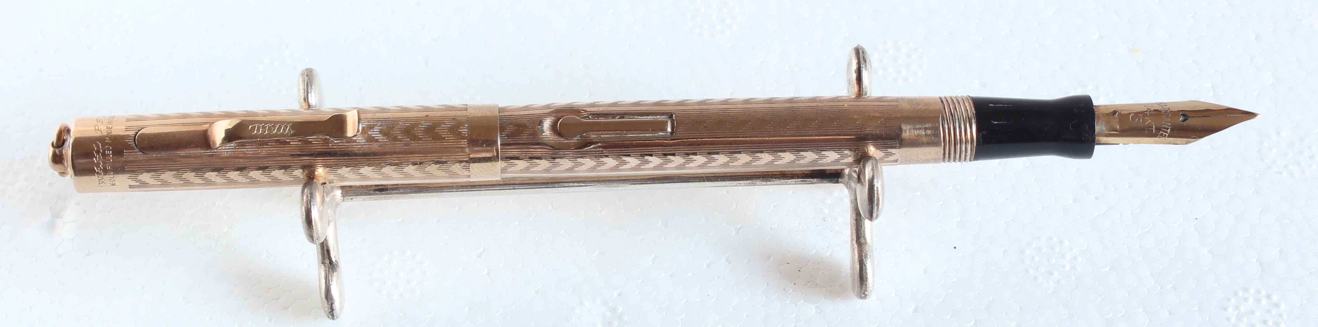 Photo of an Eversharp Wahl Engine Turned model, Gold Filled version, short size, with both clip and ring, in Check Pattern.