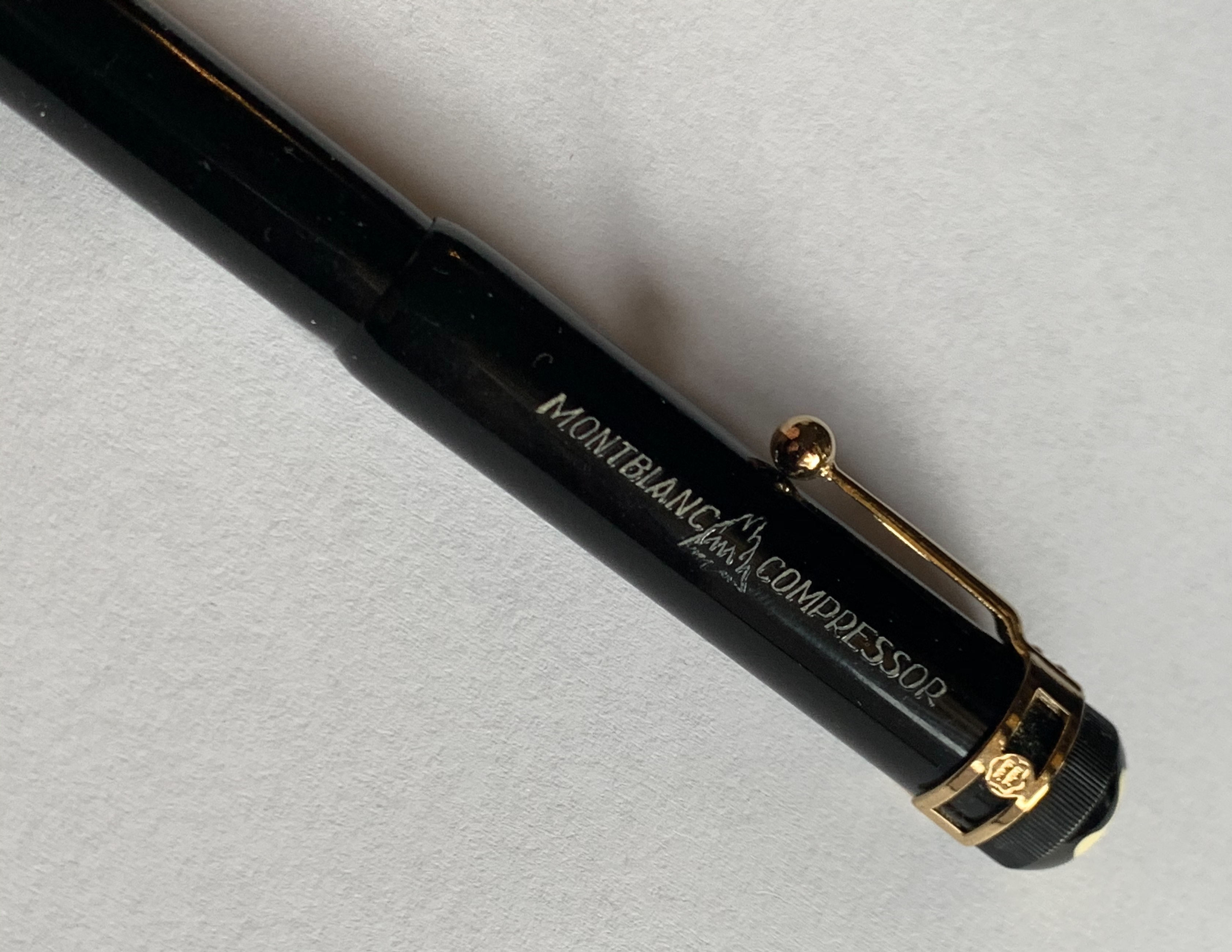 Foto di una penna Montblanc. Modello: Montblanc No. 2. Caricamento pneumatico. Realizzazione in ebanite nera. Versione con caricamento Compressor. Riporta stampigliato il numero del brevetto (nº DE-400356). Contributo di Amedeo (utente forum solido).