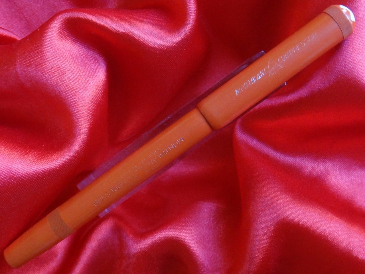 Foto di una penna Montblanc. Modello: Montblanc No. 1. Caricamento pneumatico. Realizzazione in ebanite rossa. Versione con caricamento Compressor, unico esemplare noto in ebanite rossa. Riporta stampigliato il numero del brevetto (nº DE-400356). Contributo di Massimo, utente forum Maxpen2012.