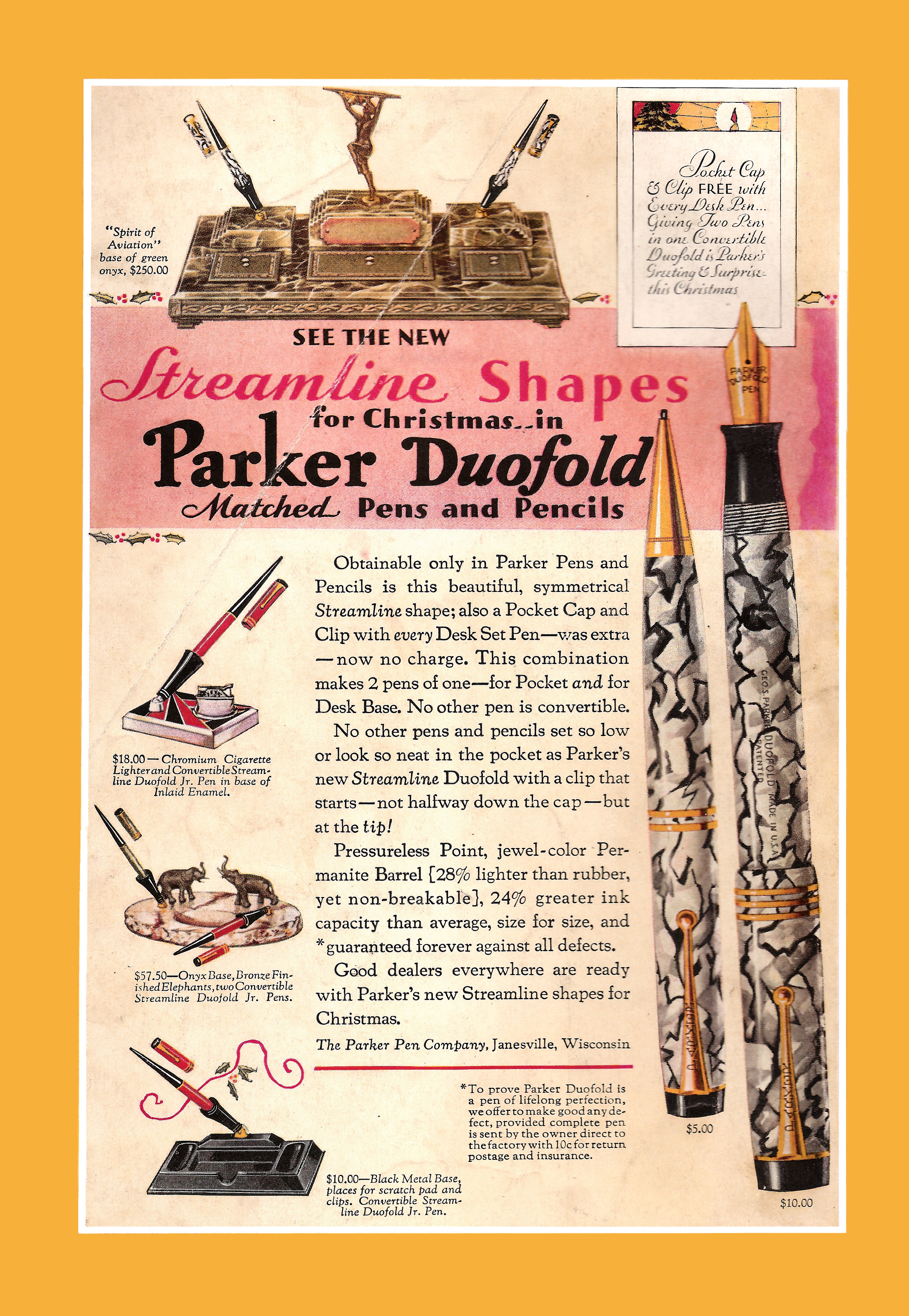 | 00:41, 27 giu 2008 | 1929-Parker-Duofold.jpg (file) | 5,06 MB | Piccardi | {{Information |Description=Pubblicità della Duofold |Source=Una pubblicità del 1929 |Date=27 Giugno 2008 |Author=[http://www.fountainpen.it/Utente:Piccardi Simone Piccardi] |Permission=GFDL }} ==Informazioni== Scansione di una pubblicità della [[ | 1 | |