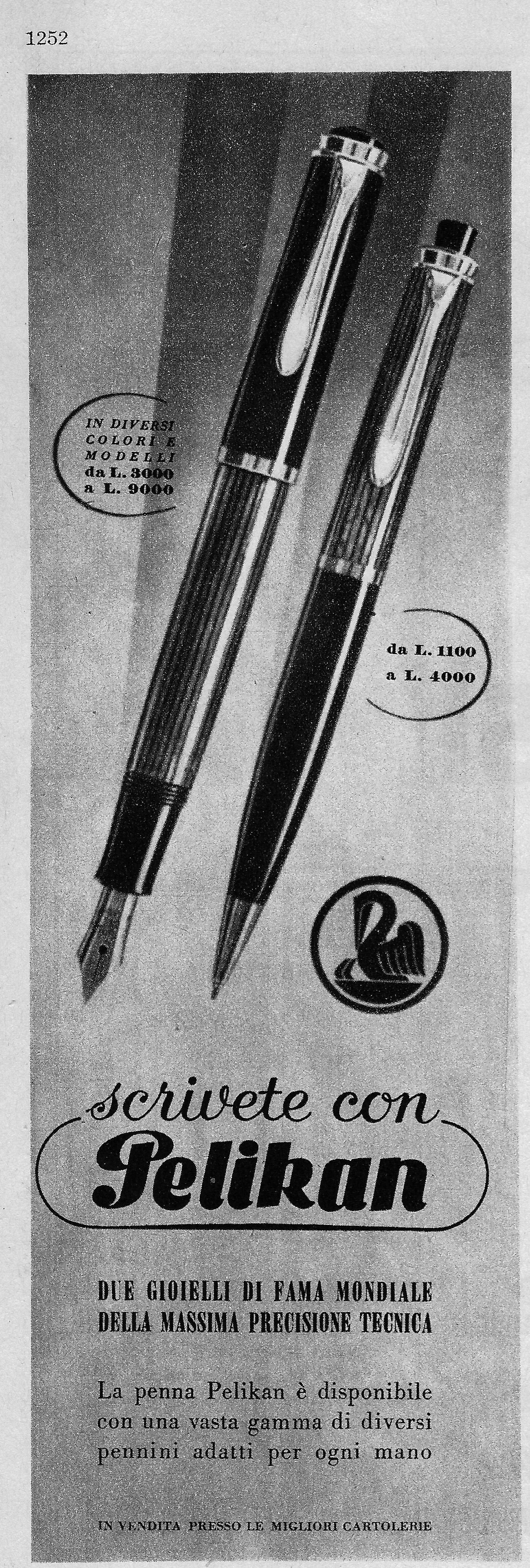 | 23:23, 26 giu 2008 | 1952-Pelikan-400.jpg (file) | 6,95 MB | Piccardi | {{Information |Description=Pubblicità della Pelikan 400 |Source=Da una pubblicità del 1952. |Date=11 Maggio 2008 |Author=[http://www.fountainpen.it/Utente:Piccardi Simone Piccardi] |Permission=GFDL }} ==Informazioni== Scansione di una pubblicità | 1 |