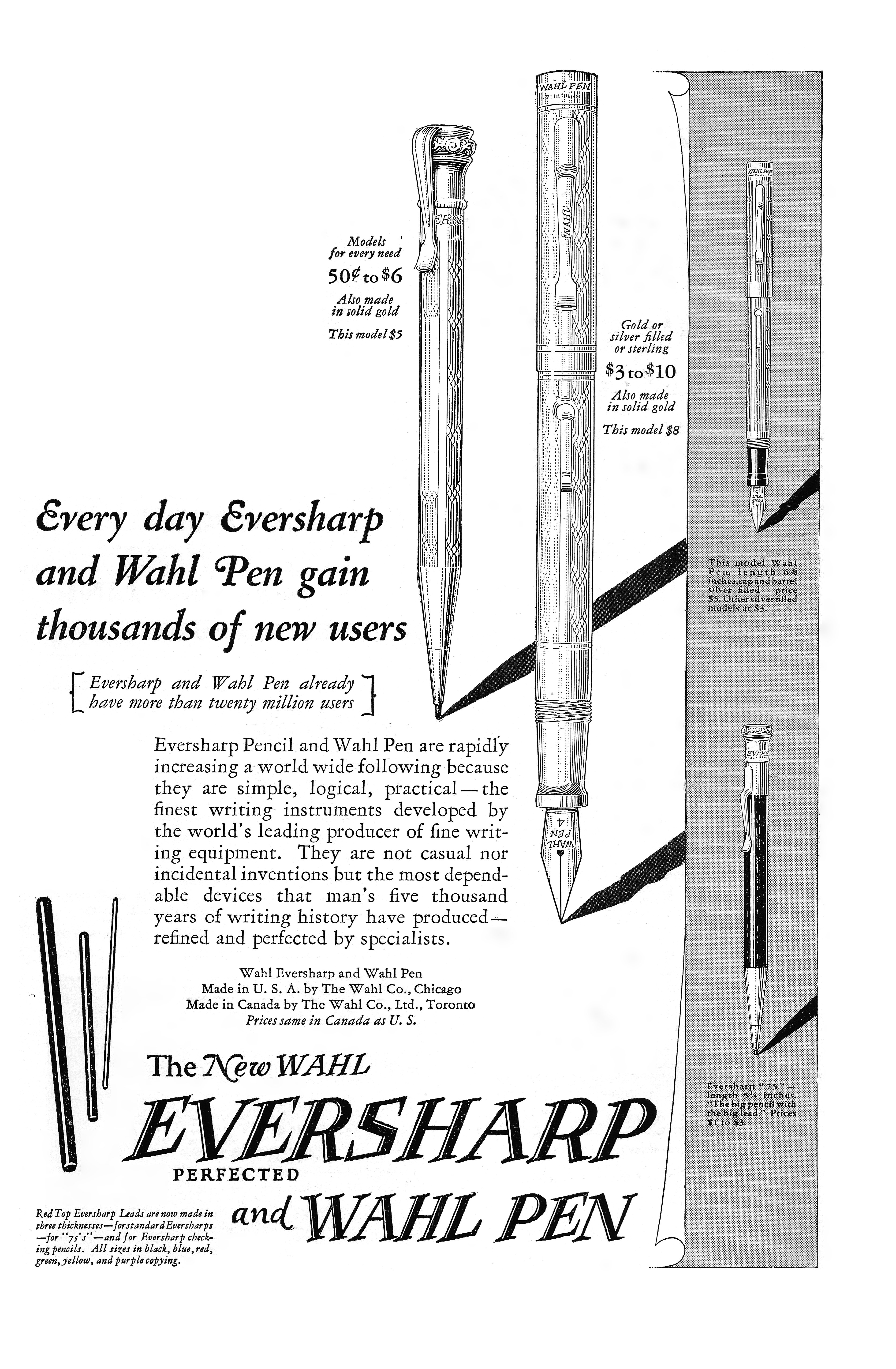 | 00:02, 25 ago 2008 | 1925-10-Wahl-AllMetal.jpg (file) | 3,48 MB | Piccardi | {{Information |Description=Pubblicità della Eversharp |Source=Da una pubblicità del 1925 |Date=25 Agosto 2008 |Author=[http://www.fountainpen.it/Utente:Piccardi Simone Piccardi] |Permission=GFDL }} ==Informazioni== Scansione di una pubblicità del | 1 | |