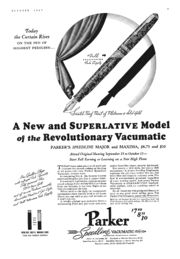 | 23:40, 24 ago 2008 | 1937-10-Parker-Vacumatic-Speedline.jpg (file) | 3,22 MB | Piccardi | {{Information |Description=Pubblicità della Vacumatic |Source=Da una pubblicità del 1937. |Date=25 Agosto 2008 |Author=[http://www.fountainpen.it/Utente:Piccardi Simone Piccardi] |Permission=GFDL }} ==Informazioni== Scansione di una pubblicità de | 1 | |