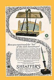 | 19:55, 1 nov 2008 | 1928-08-Sheaffer-Lifetime-DeskSet.jpg (file) | 5,44 MB | Piccardi | {{Information |Description=Pubblicità di set da scrivania Lifetime |Source=Da una pubblicità del 1928 |Date=1 Novembre 2008 |Author=[http://www.fountainpen.it/Utente:Piccardi Simone Piccardi] |Permission=GFDL }} ==Informazioni== Scansione di una p | 1 | |
