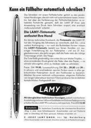 | 23:52, 3 lug 2008 | 1958-Lamy-27-2.jpg (file) | 2,25 MB | Piccardi | {{Information |Description=Pubblicità della Lamy 27 |Source=Una pubblicità degli anni '50 |Date=4 Luglio 2008 |Author=[http://www.fountainpen.it/Utente:Piccardi Simone Piccardi] |Permission=GFDL }} ==Informazioni== Dalla scansione di una pubblicit | 1 | |
