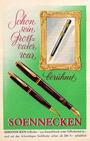 | 15:46, 5 dic 2008 | 1953-Soennecken-111-Red-Set.jpg (file) | 3,02 MB | Piccardi | {{Information |Description=Pubblicità della Soennecken |Source=Da una pubblicità degli anni '50 |Date=5 Dicembre 2008 |Author=[http://www.fountainpen.it/Utente:Piccardi Simone Piccardi] |Permission=GFDL }} ==Informazioni== Scansione di una pubblic | 1 | |