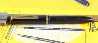 Photo of a pen produced by Kaweco. Model: Dia 805G. Filling system: piston filler. In black plastic resin. Marked for "M" nib.