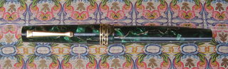 Foto di una Radius (produzione SAFIS) modello Superior in celluloide verde screziata. Contributo di Roberto Vetrugno (utente forum.fountainpen.it roberto v).