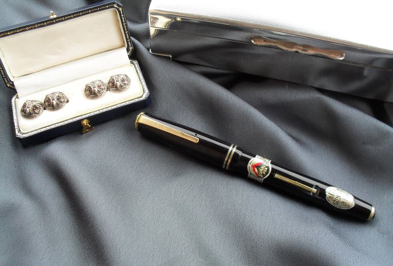 Foto di una penna Summit (un marchio della Lang - Curzon - Summit). Modello: Summit S.175. Caricamento a levetta. Realizzazione in celluloide nera liscia. Versione economica. Completa di adesivi con il prezzo. Contributo di Alberto (utente forum A Casirati).