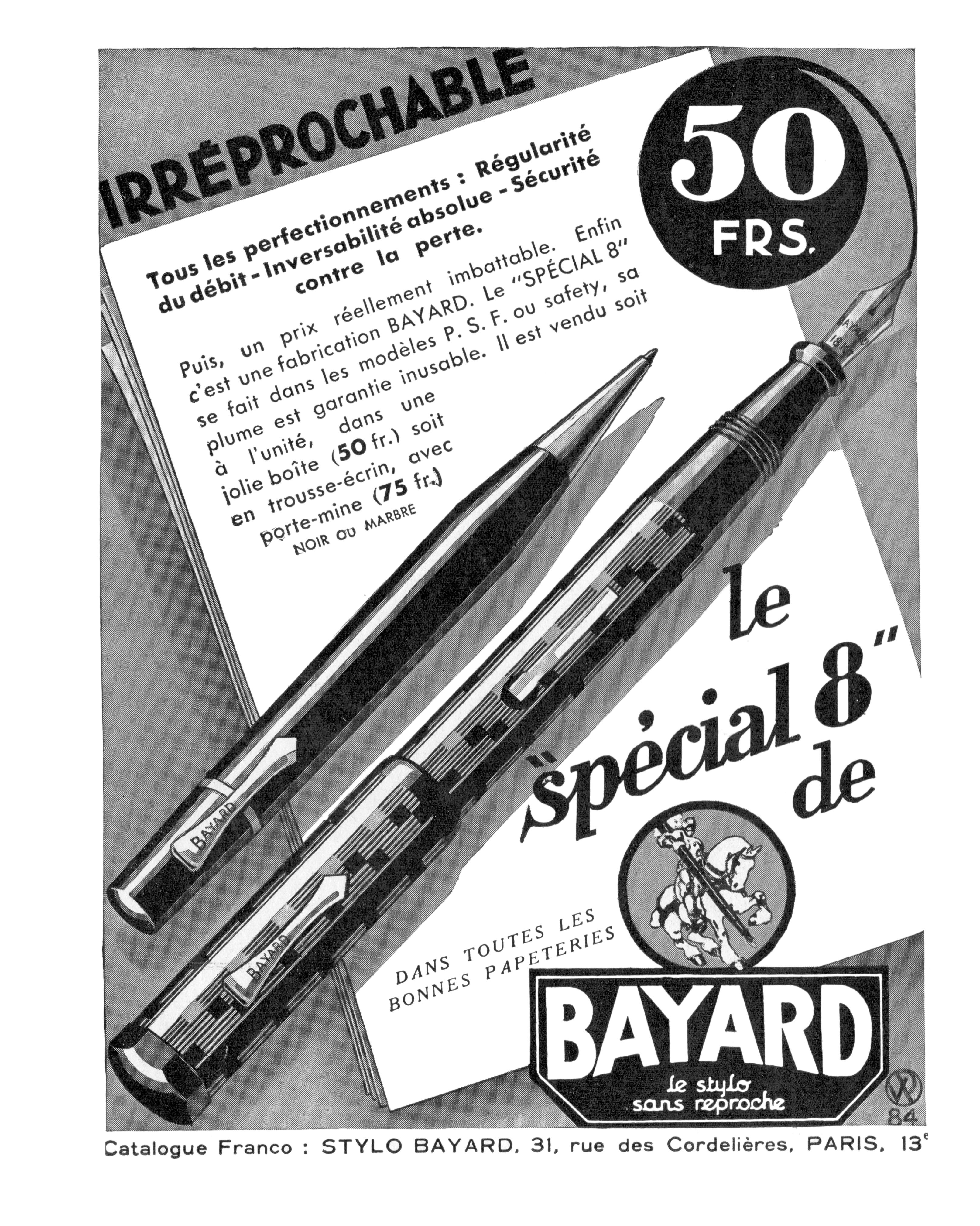 Scansione di una pubblicità Bayard datata 1932-10-29. Pubblicazione su: L'Illustration, n. 4678. Ritoccata dall'autore per una migliore nitidezza. Data visibile direttamente. Pubblicizza il modello Special 8.