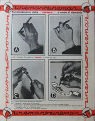 Scanning of a brochure from Uneman dated 1932. Retouched by the author for a better sharpness. Guess date, from the model time, stand for beginning of 30s. Advertising for the Uneman pen. Third page. On the other side of File:193x-Uneman-Brochure-p01.jpg.
