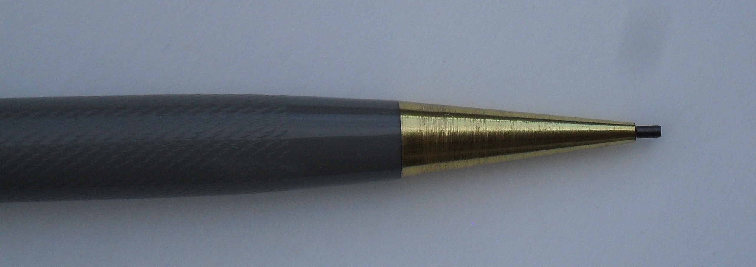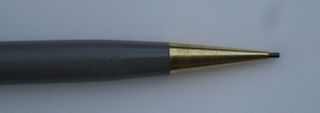 Foto di una matita meccanica Summit (un marchio della Lang - Curzon - Summit). Modello: Summit P.160. Realizzazione in celluloide grigia cesellata. Parte di una combinazione con stilografica (S.160) e sfera (Z.160). Contributo di Alberto (utente forum A Casirati).