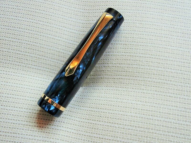Photo of a pen produced by Stilnova (a Pagliero trademark). Model: Stilnova Extra. Filling system: lever filler. In blue celluloid.
