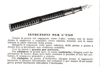 Scanning of a Caesar (sub-band of Fratelli Rossi Vicenza) an instruction sheet from '30s. Filling instructions. On the other side of File:Caesar-Safety-Warrant.jpg. Contributed by Paolo, http://www.zona900.it, (utente forum fountainpen.it sanpei). From an original package.