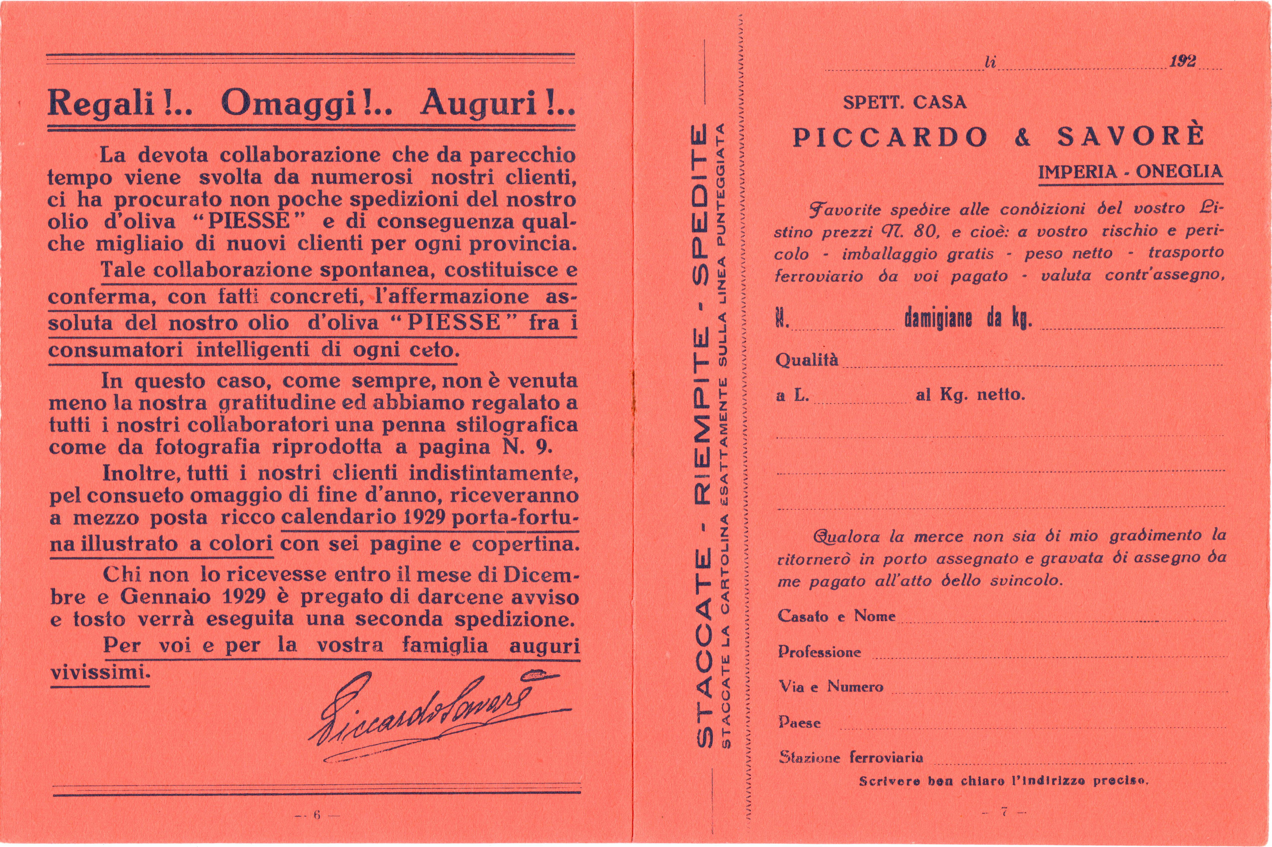 Scansione di una pubblicità Stilus datata 1928-11. Ritoccata dall'autore per una migliore nitidezza. alla spedizione di un calendario illustrato del 1929 entro dicembre, abbinata all'olio, il che consente di datare con certezza la brochure al 1928, negli ultimi mesi dell'anno (con novembre come stima massima). Offerta del modello Stilus 425 come premio per i clienti da parte di un oleificio.