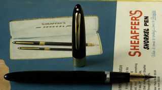 Foto di una penna Sheaffer. Modello: Snorkel Pen. Caricamento "Touch Down snorkel". Realizzazione in resina plastica nera. Versione denominata Valiant.