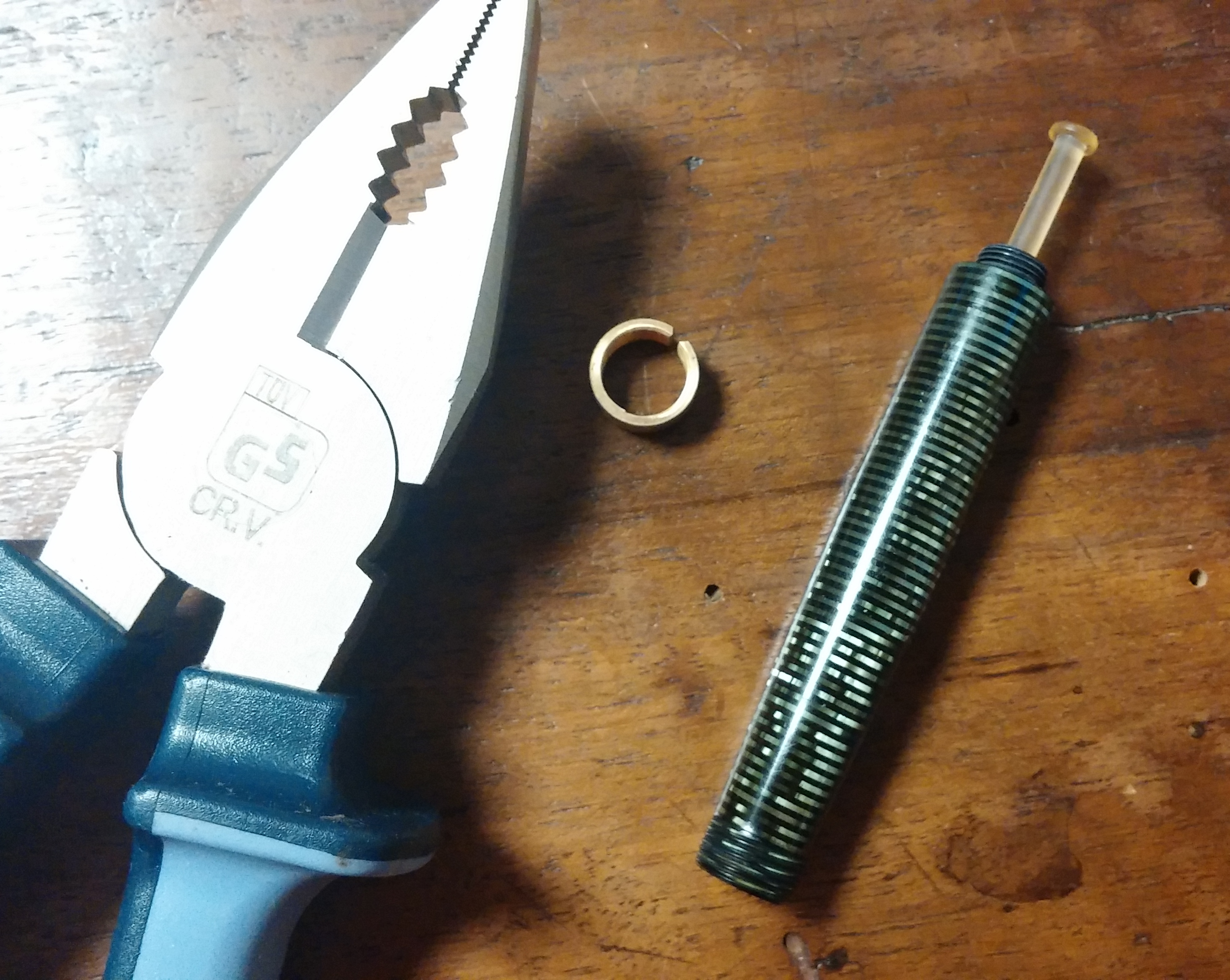 Dado filettato in ottone con taglio longitudinale usato per smontare il meccanismo della Vacumatic.
