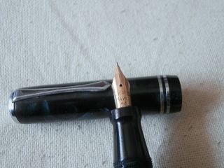 Foto di una penna Asco (sottomarca Fabbrica Italiana Penne a Serbatoio Aurora). Realizzazione in celluloide marmorizzata blu. Contributo di Fabrizio Falchi, (utente forum fountainpen.it fab66).