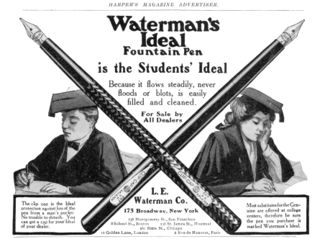 Scansione di una pubblicità Waterman datata 1905. Pubblicazione su: Harper's Magazine Advertiser. Ritoccata dall'autore per una migliore nitidezza. Data indicata dal fornitore, affidabile. Pubblicizza alcune 1x a contagocce ed il Clip Cap. Sull'altro lato di File:1905-Paul-Wirt.jpg.