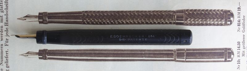 Photo of a pen produced by Soennecken. Model: Soennecken 814. Filling system: safety. In black hard rubber. Courtesy of Fiocchetti (utente forum Fiocchetti).