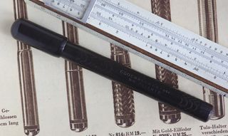 Foto di una penna Soennecken. Modello: Soennecken 814. Caricamento rientrante. Realizzazione in ebanite nera. Messa a disposizione da Fiocchetti (utente forum Fiocchetti).