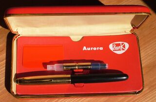 Foto di una penna Aurora. Modello: Duo-Cart. Caricamento a cartuccia. Realizzazione in resina plastica nera. Versione 2cart-K. Contributo di Massimo (utente forum maxpop55).