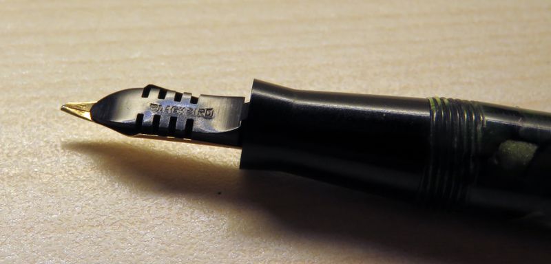 Versione del 10 ott 2019 alle 12:17 di Piccardi (discussione | contributi) ({{PhotoInfo |Marca=Blackbird |Modello=Blackbird BB 2 |Oggetto=pen |Particolare=feed |Caricamento=lever |Contributo=lucawm |Materiale=celluloide |MatDesc_it=verde marmorizzato |MatDesc_en=green marbled |Licenza=Cc-by-sa-3.0 |Note_it=Versione più antica...)