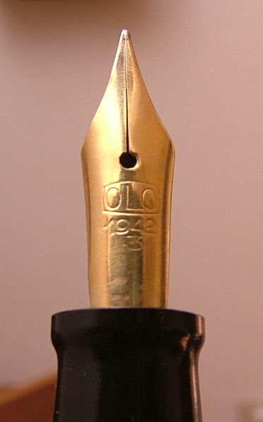 Versione del 20 ott 2019 alle 11:59 di Piccardi (discussione | contributi) ({{PhotoInfo |Marca=Olo |Oggetto=pen |Particolare=nib |Modello=Olo Lusso |Contributo=maxpop |Caricamento=button |Materiale=celluloide |MatDesc_it=nera |MatDesc_en=black |Licenza=Cc-by-sa-3.0 |Note_it=Pennino in acciaio dorato. |Note_en=Golden steel nib. }})