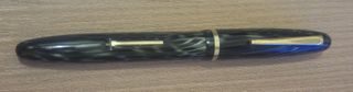 Photo of a pen produced by Columbus. Model: Columbus 55. Filling system: lever filler. In striated green celluloid.