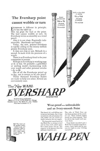 <multilang> @it|Scansione di una pubblicità Eversharp del 1925 per un set penna/matita Wahl Engine Turned, nella lavorazione Dart. Pubblicata probabilmente sul The National Geographic Magazine. @en|Scanning of a 1925 Eversharp advertising for a Wahl Engine Turned pen/pencil set, Dart pattern. Published probably on The National Geographic Magazine. </multilang>