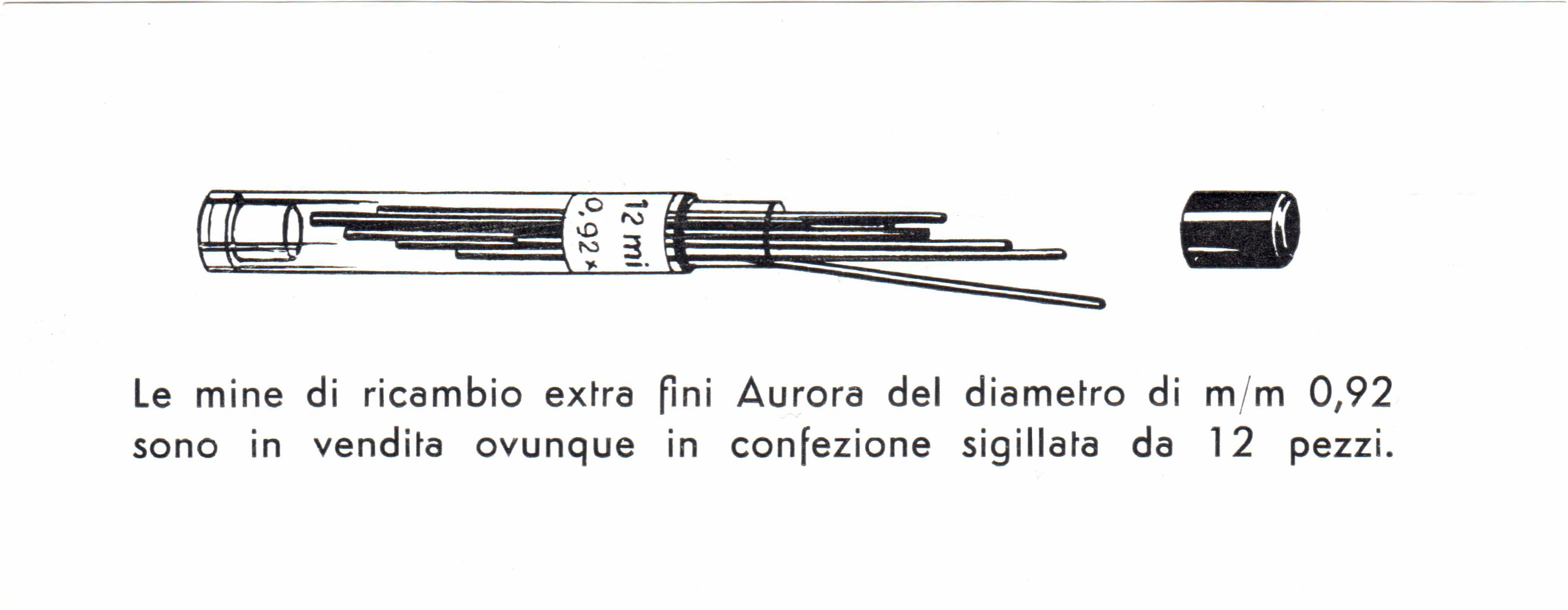 Scanning of a Aurora an instruction sheet from '50s. For a Aurora 98 model. Series of sheets found to accompany the fountain pen/ball combination. Instruction for the mechanical pencil, back. On the other side of File:195x-Aurora-98-SetBiro-Foglietti-RefillPencilFront.jpg. Retouched by the author for a better sharpness. From an original package.