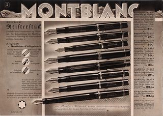 <multilang> @it|Scansione di un catalogo Montblanc del 1938 per i vari modelli di quell'anno. Seconda pagina. Ritoccata dall'autore per una maggiore nitidezza. @en|Scanning of a 1938 Montblanc catalog for the full model lines. Second page. Retouched by the author for a better sharpness. </multilang>
