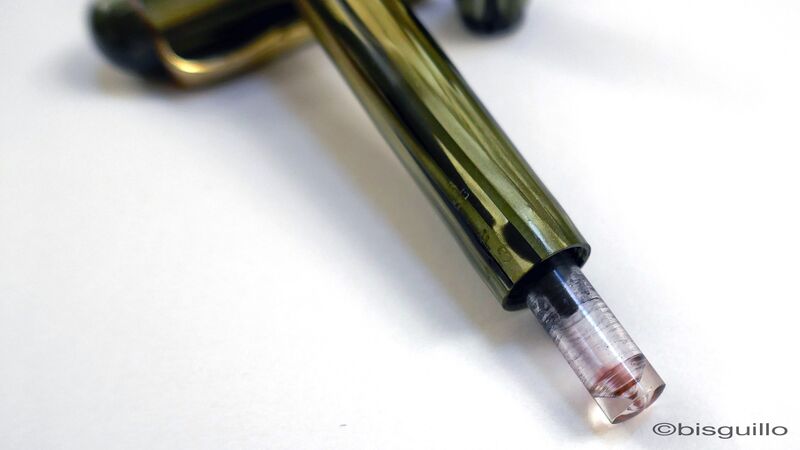 Foto di una penna Compaktor. Caricamento tipo vacumatic. Realizzazione in celluloide striata marrone. Penna marcata Compaktor ref. 493-f Tuffi. Caricamento particolare. Contributo di Andrea (utente forum bisguillo).