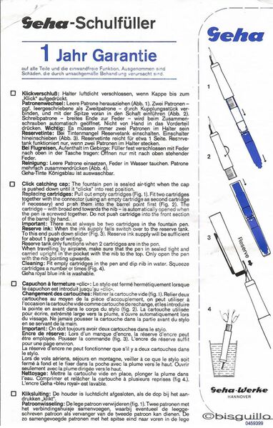 Versione del 11 apr 2020 alle 12:33 di Geko (discussione | contributi) ({{PhotoInfo |Marca=Geha |Oggetto=pen |Caricamento=cartridge |Contributo=bisguillo |Materiale=steel/plastic |MatDesc_it=turchese |MatDesc_en=turquoise |Note_it=Penna marcata ''Geha ref.712A-m''. |Note_en=Pen mared ''Geha ref.712A-m''. }})