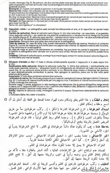 Scanning of a Geha instruction sheet from '50s. Instructions in italian, Spanish and Arabian. On the other side of File:Geha-712A-Instruction-Front.jpg. Retouched by the author for a better sharpness. Contributed by Andrea (utente forum bisguillo). From an original package.