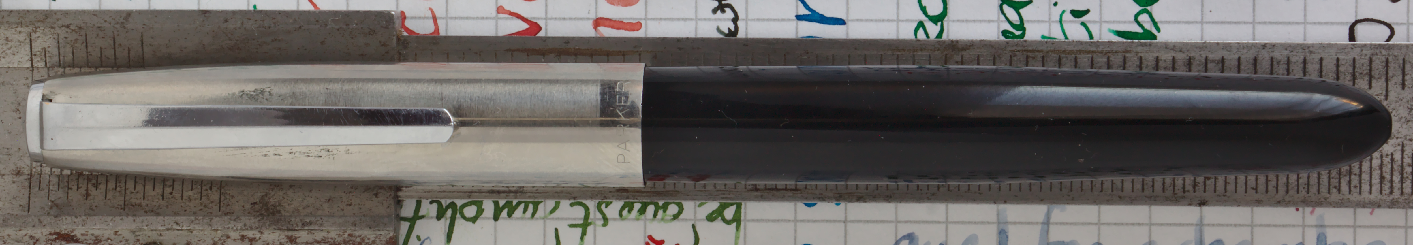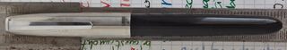 Foto di una penna Parker. Modello: Parker 21. Caricamento "Aerometric". Realizzazione in resina plastica nera. Versione Mark I.
