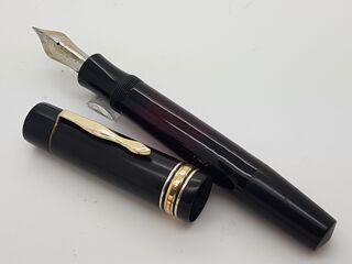 Photo of a pen produced by Montblanc. Model: Montblanc 139. Filling system: piston filler. In black celluloid. Steel nib and long window version.