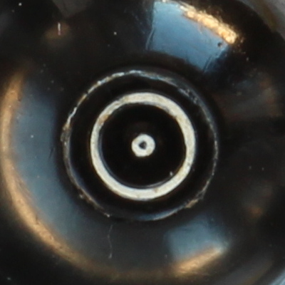 Photo of the plug in the knob of a Aurora 88 bearing the color code for a broad sized medium tip (broad/medium tip).