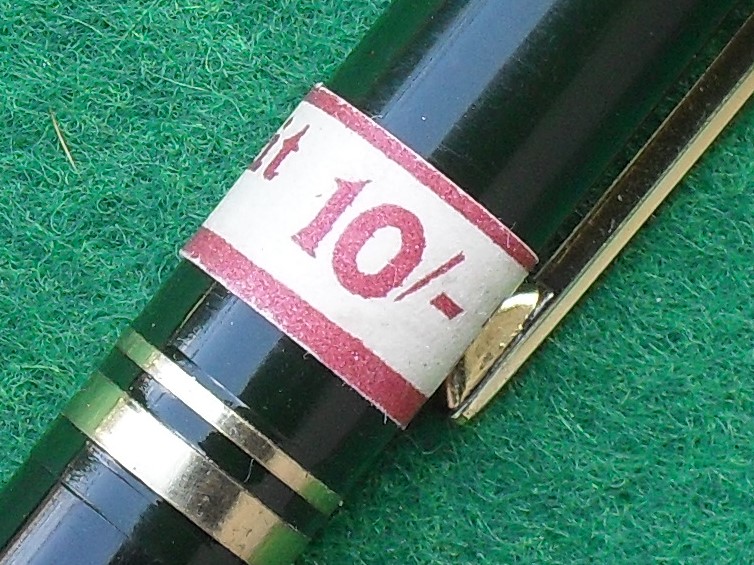 Photo of a pencil produced by Summit (a Lang - Curzon - Summit trademark). Model: Summit P.110. In black celluloid. Detail of sticker. Mechanical pencil paired with pen, new with sticker.