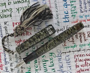 Versione del 23 nov 2020 alle 09:06 di Piccardi (discussione | contributi) ({{PhotoInfo |Marca=Columbus |Modello=Columbus 100 |Oggetto=pen |Caricamento=button |Materiale=celluloide |MatDesc_it=anellata grigia |MatDesc_en=ringed grey |Licenza=Cc-by-sa-3.0 |Note_it=Modello da signora con finiture cromate e pennino in acciaio. |N...)