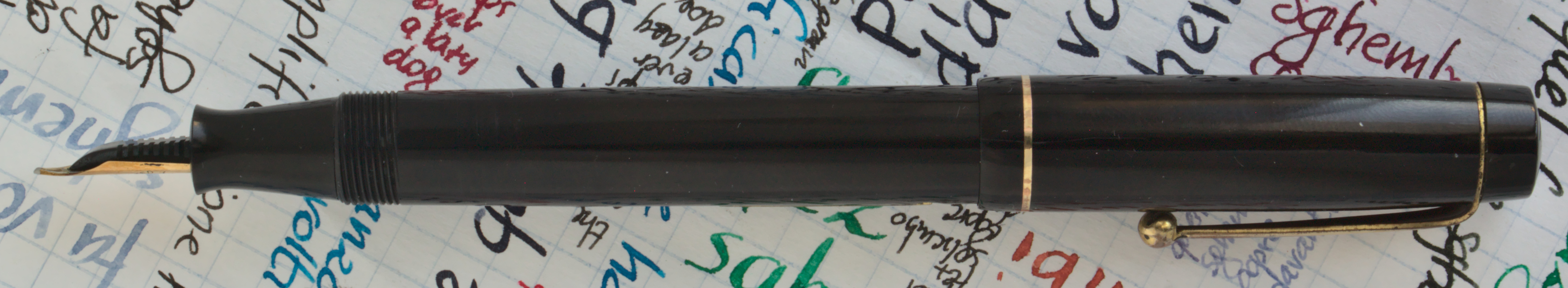 Foto di una penna Stephens. Modello: Leverfil 106. Caricamento a levetta. Realizzazione in ebanite nera. Penna di produzione Lang.