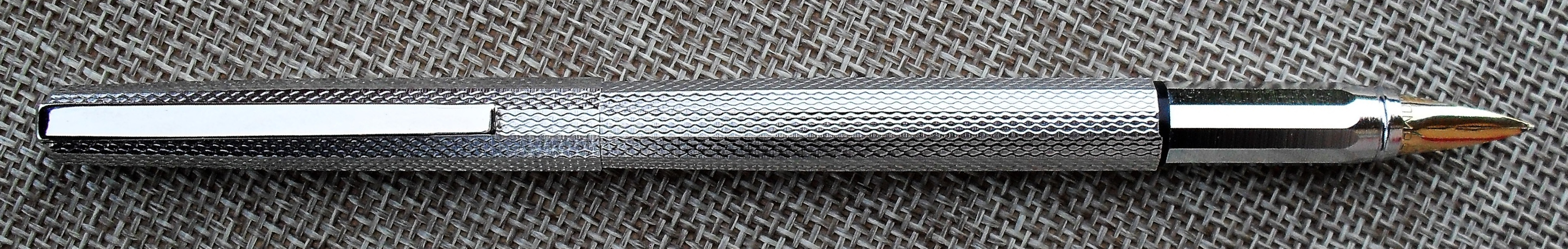 Photo of a pen produced by Omas. Model: Omas 50. Filling system: cartridge filler. In steel metal. Engine turned version with barleycorn pattern.
