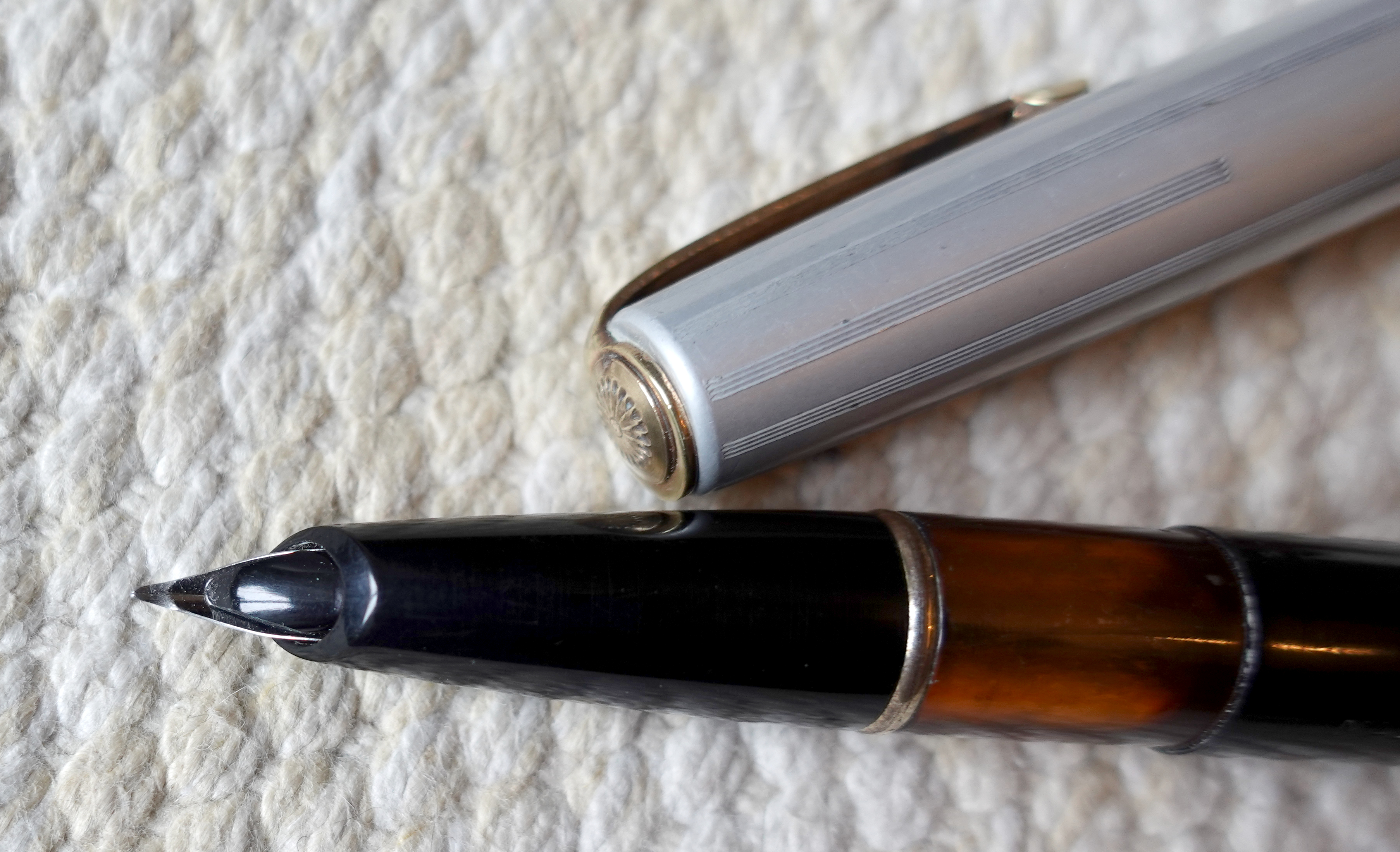 Foto di una penna Contessa. Modello: Contessa Studium. Realizzazione in resina plastica nera. Modello scolastico pennino coperto. Contributo di Andrea (utente forum bisguillo).